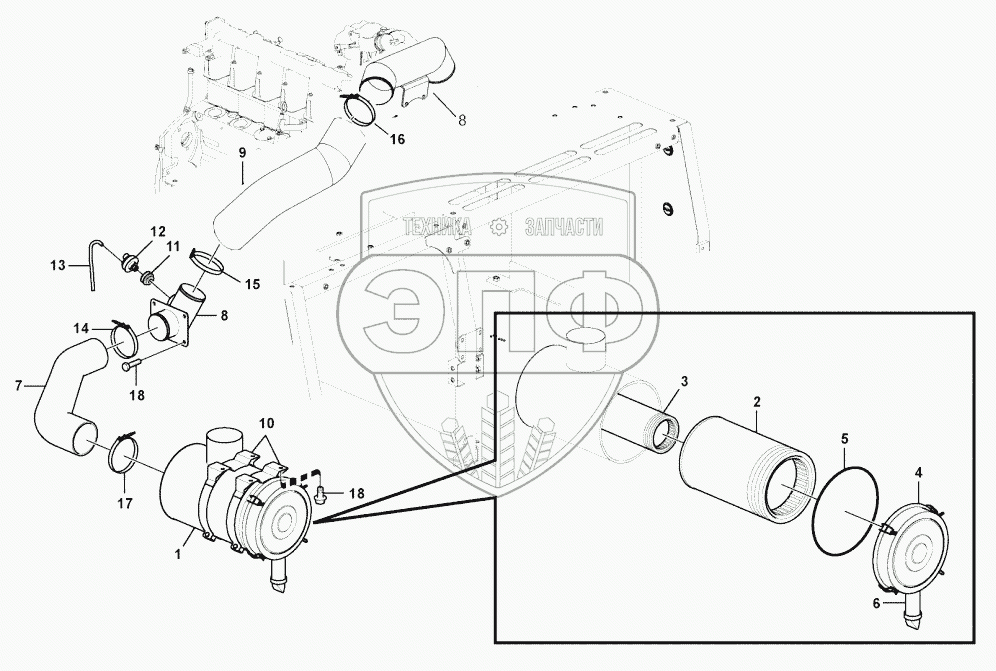 Каталог запасных частей к технике: SDLG LG6210E. Intake system