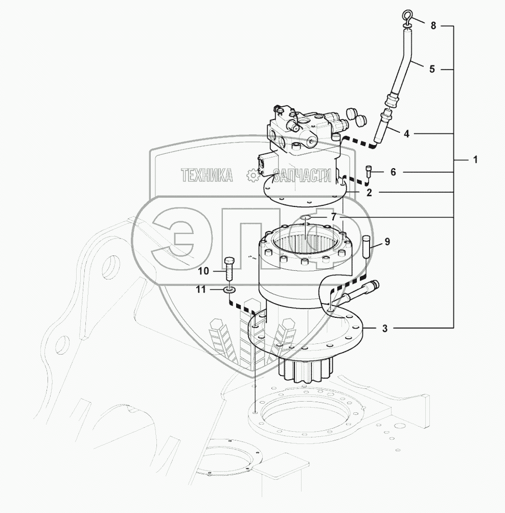 Каталог запасных частей к технике: SDLG LG6210E. Rotating motor with mounting parts