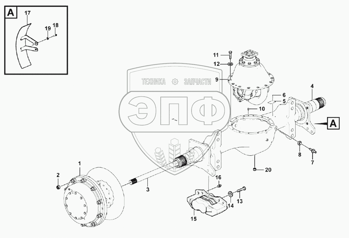 Каталог запасных частей к технике: SDLG LG933. Front axle AL20A-3
