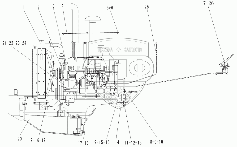 Каталог запасных частей к технике: SDLG LG933L. Система двигателя