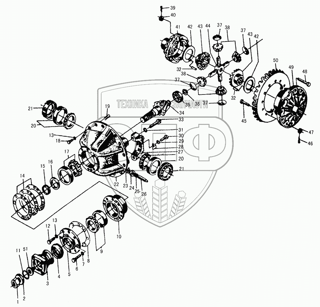 Каталог запасных частей к технике: SDLG LG936. FRONT AXLE MAINDRIVE ASSY