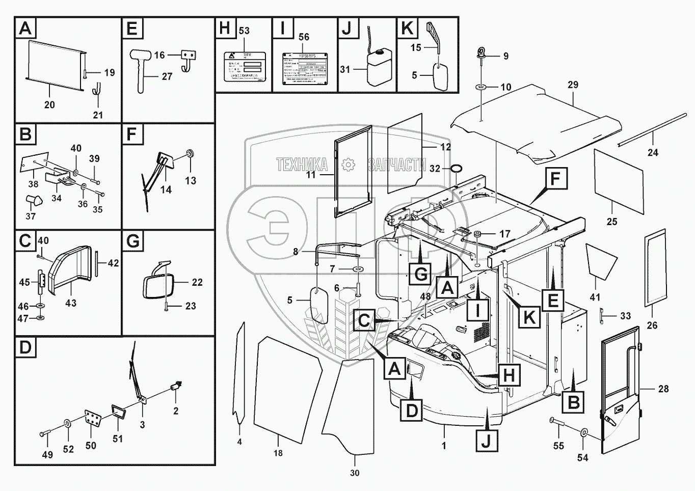 Каталог запасных частей к технике: SDLG LG938F. Cab