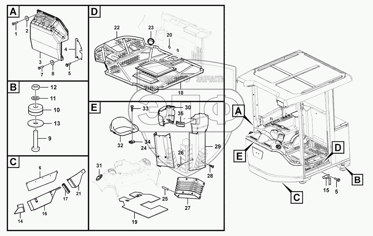 Каталог запасных частей к технике: SDLG LG938F. Cab accessory