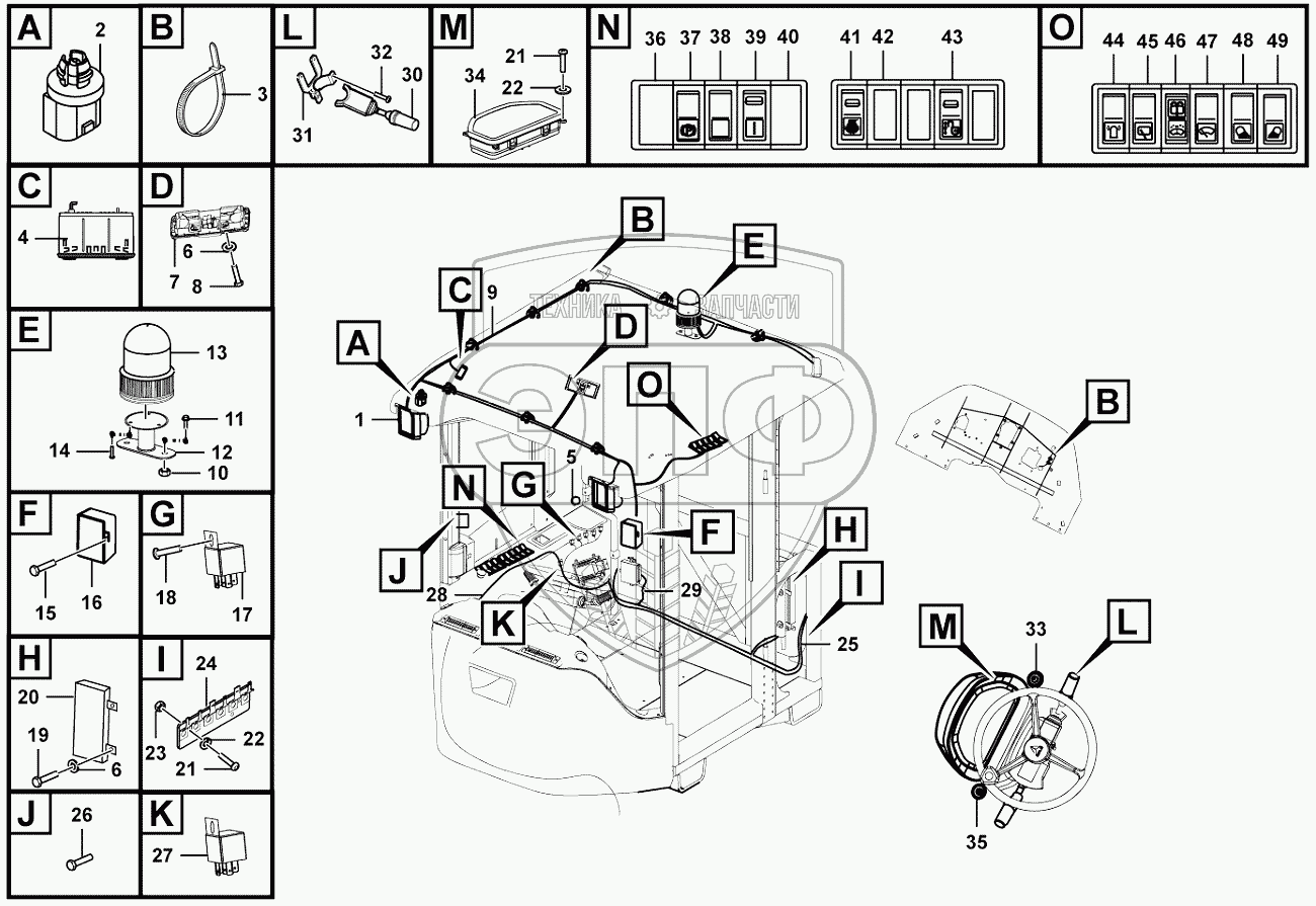 Каталог запасных частей к технике: SDLG LG938F. Cab electric assembly