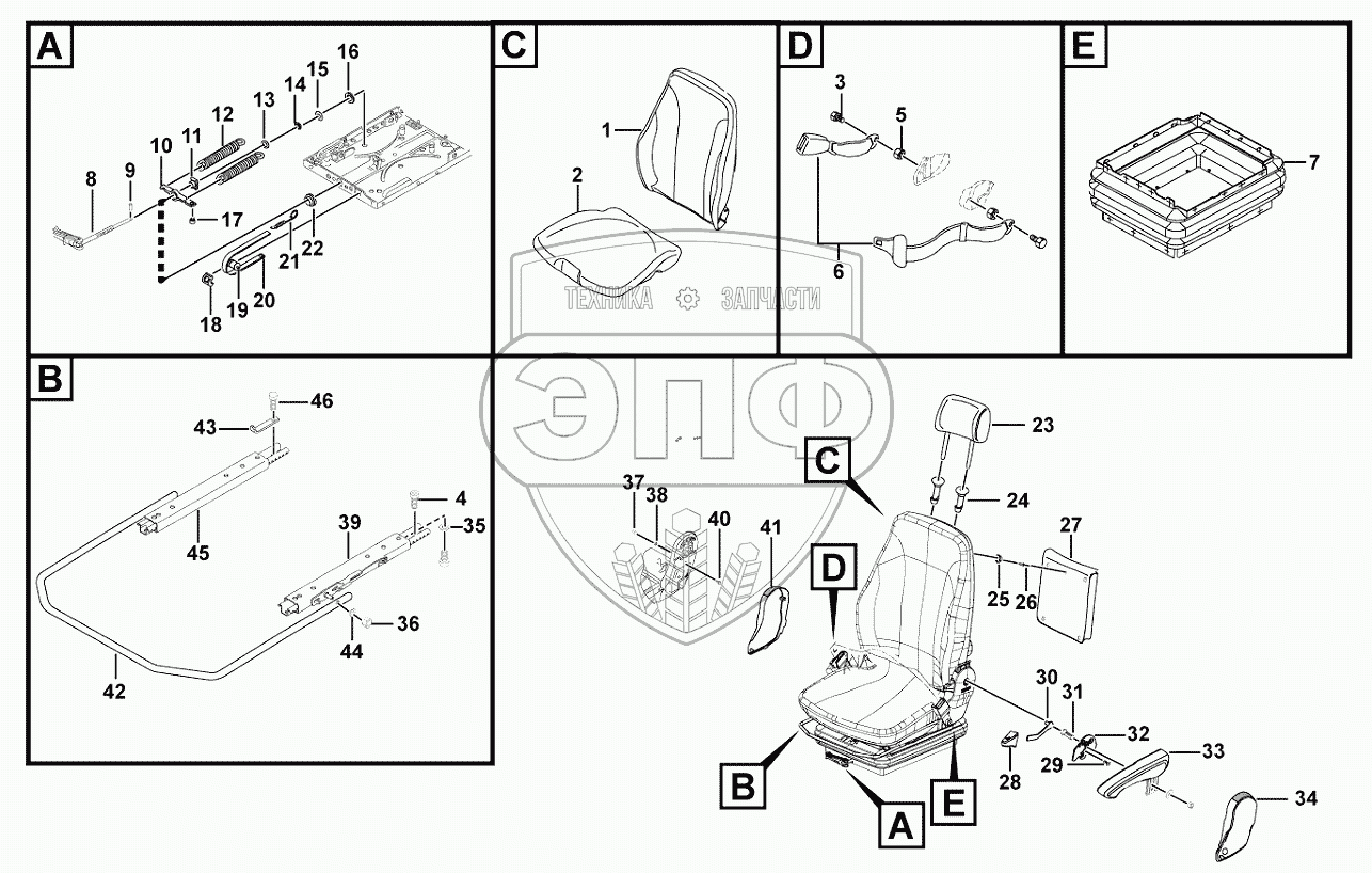 Каталог запасных частей к технике: SDLG LG938F. Driver seat LG06A (350201)