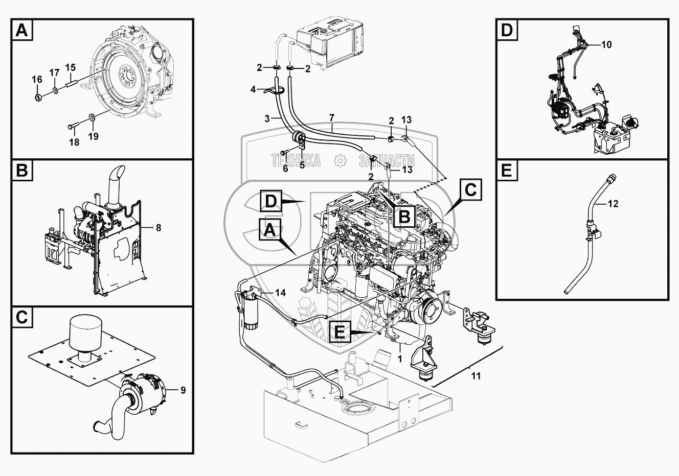 Каталог запасных частей к технике: SDLG LG938F. Engine asembly