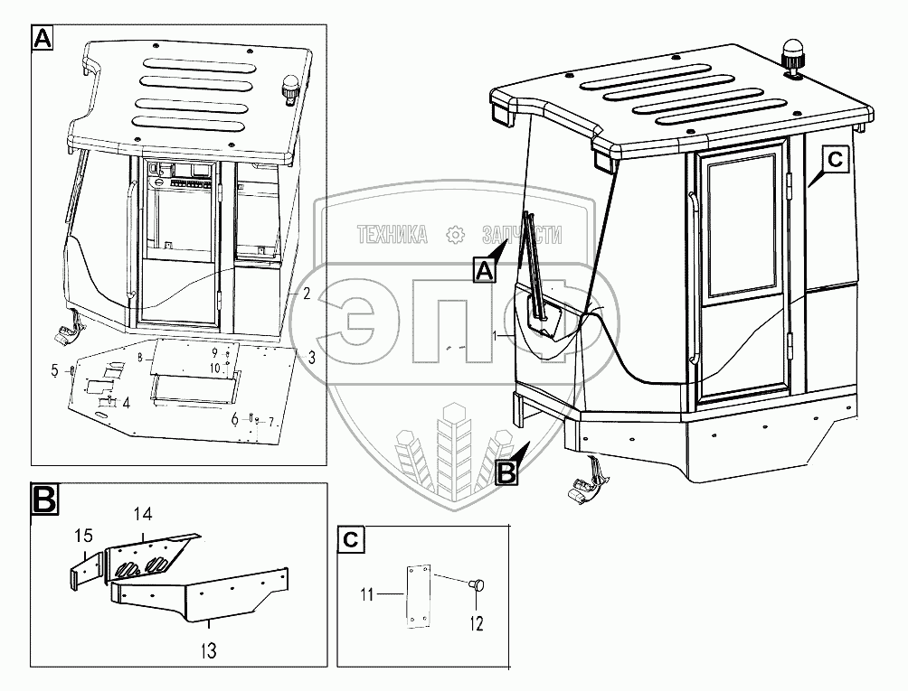 Каталог запасных частей к технике: SDLG LG944MSK. Cab assembly