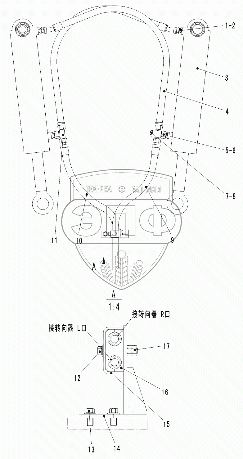 Каталог запасных частей к технике: SDLG LG952H. STEERING CYLINDER ASSEMBLY