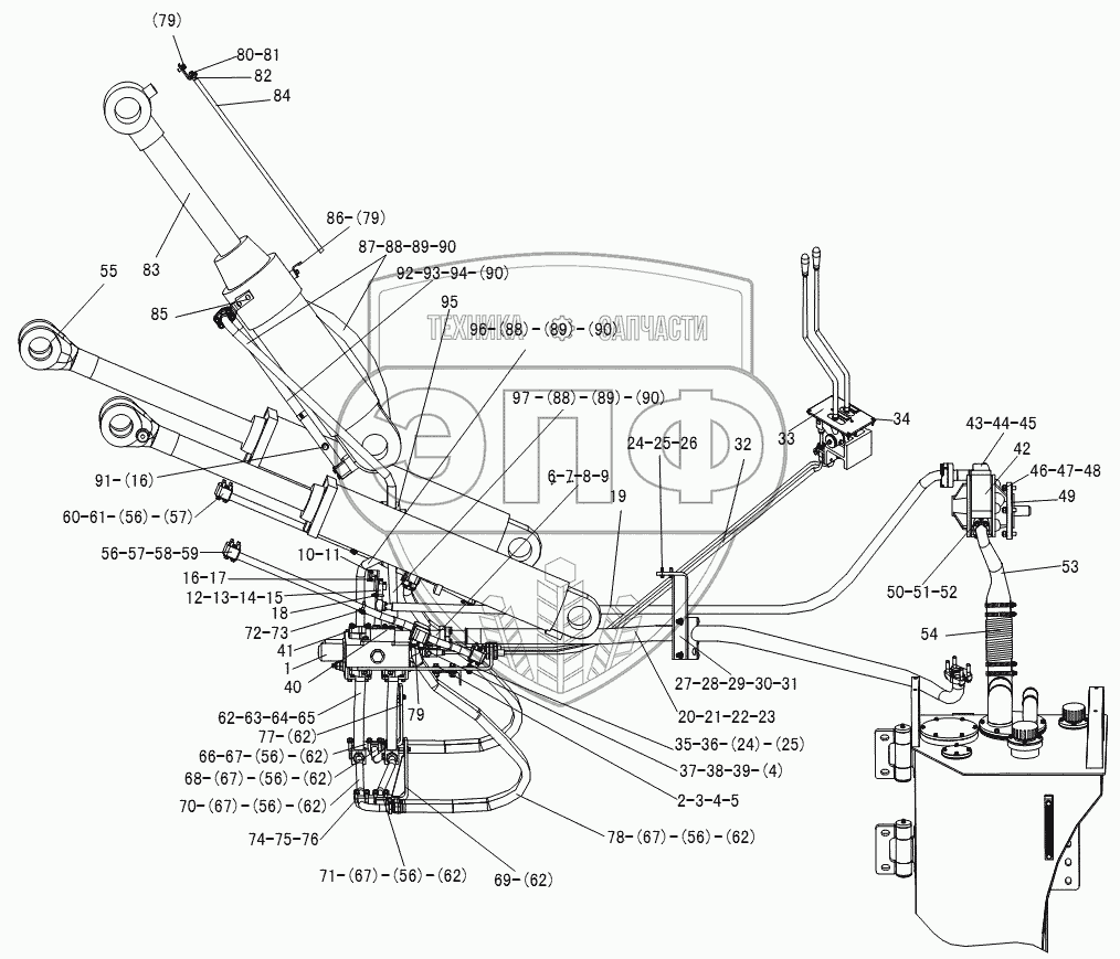 Каталог запасных частей к технике: SDLG LG953. IMPLEMENT HYDRAULIC SYSTEM