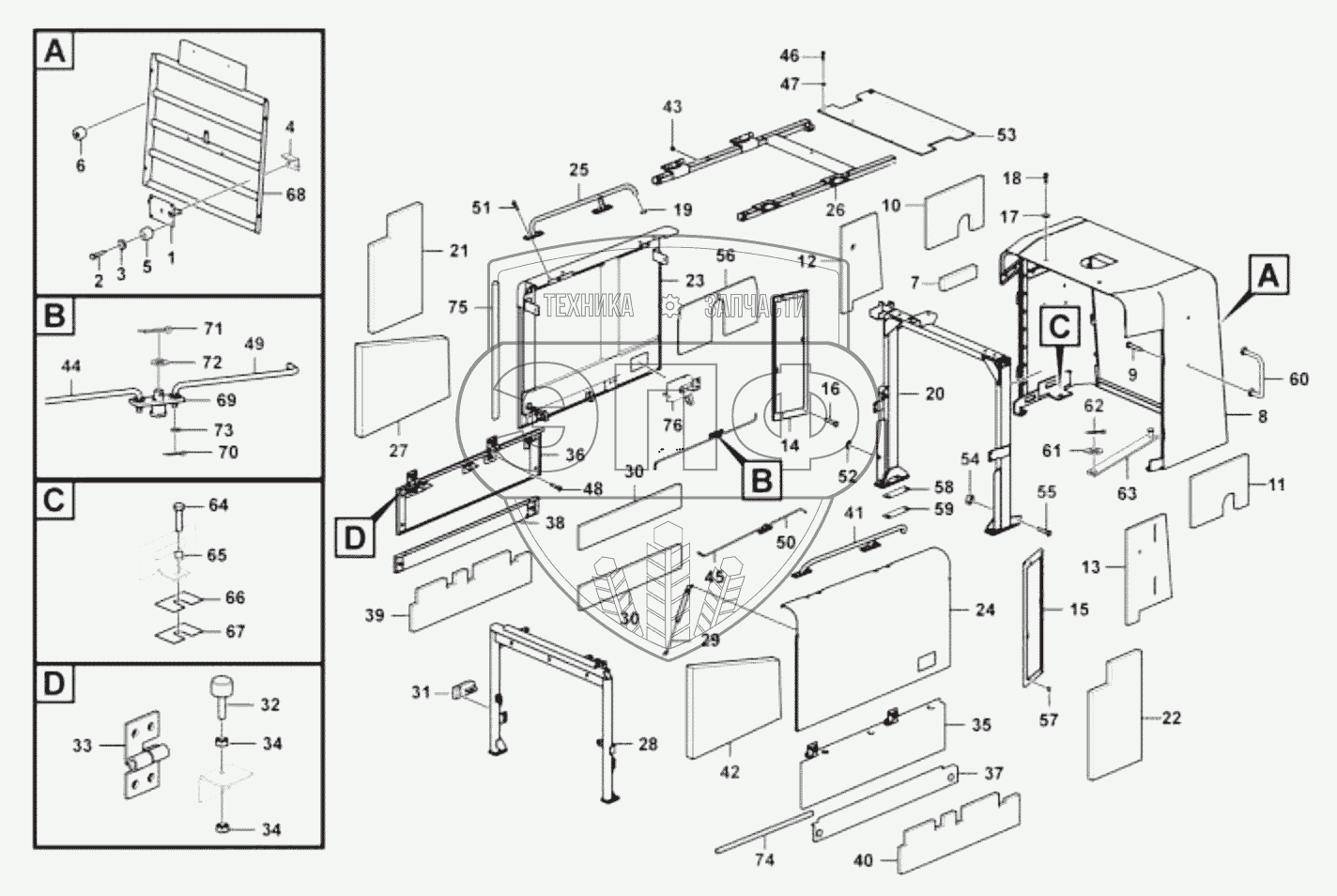 Каталог запасных частей к технике: SDLG LG953N. Engine hood assembly