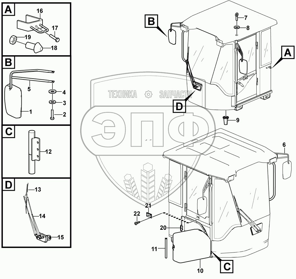 Каталог запасных частей к технике: SDLG LG956F. Cab assembly