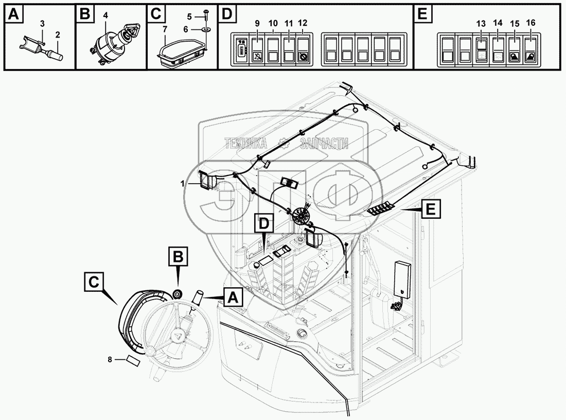 Каталог запасных частей к технике: SDLG LG956F. Cab electric system