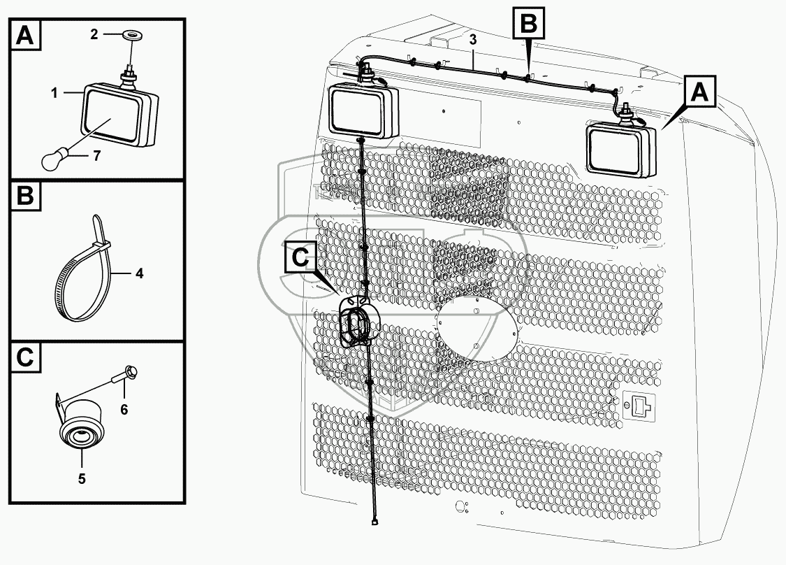 Каталог запасных частей к технике: SDLG LG956F. Engine hood electric system