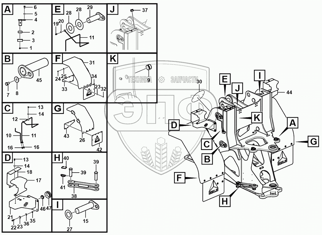Каталог запасных частей к технике: SDLG LG956F. Front frame accessory