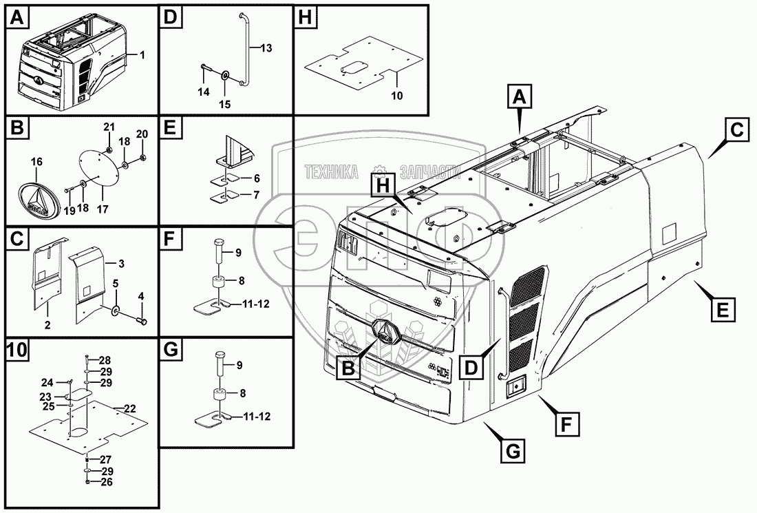 Каталог запасных частей к технике: SDLG LG956F. Hood