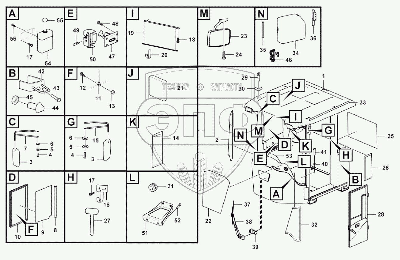 Каталог запасных частей к технике: SDLG LG956FH. Cab assembly