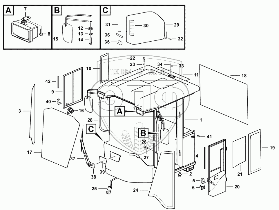 Каталог запасных частей к технике: SDLG LG956L. Cab assembly