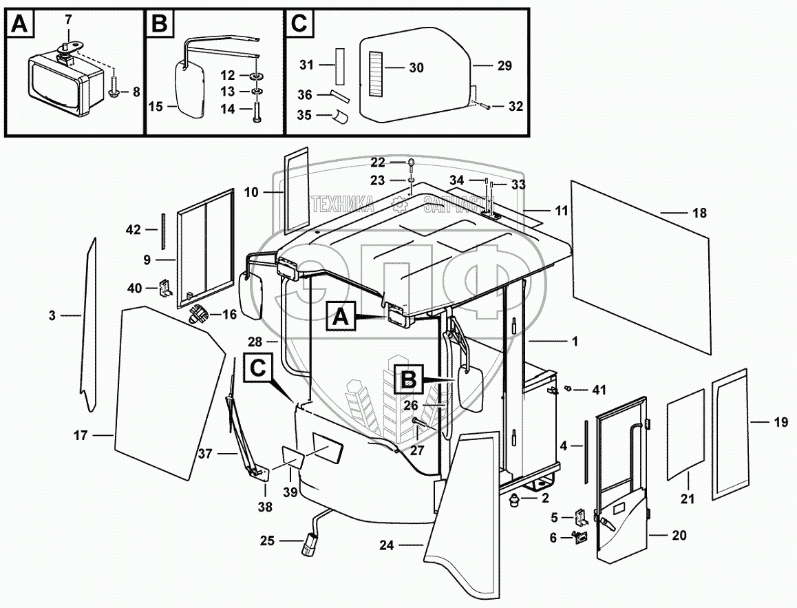 Каталог запасных частей к технике: SDLG LG956V. Cab external parts assembly