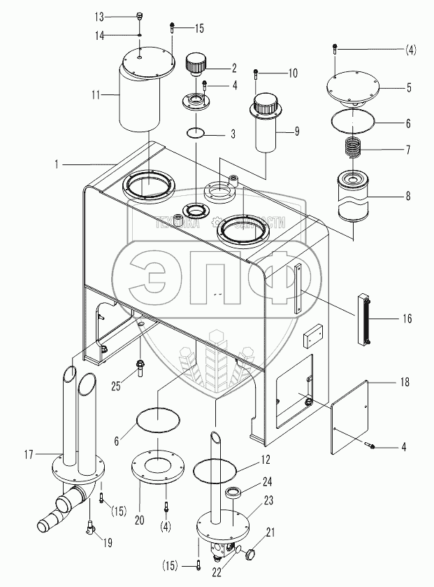 Каталог запасных частей к технике: SDLG LG958. HYDRAULIC TANK ASSEMBLY