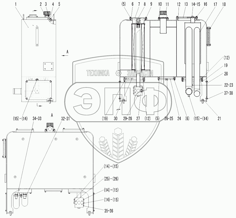 Каталог запасных частей к технике: SDLG LG958L. HYDRAULIC TANK ASSEMBLY