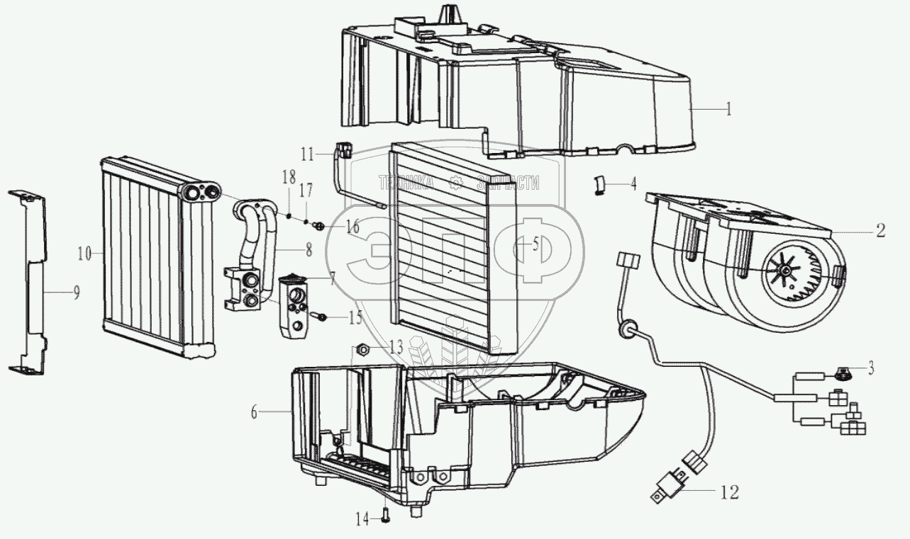 Каталог запасных частей к технике: SDLG LG958N. (330112) Evaporator assembly
