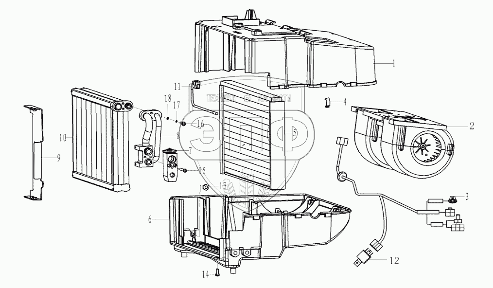 Каталог запасных частей к технике: SDLG LG958N. Evaporator assembly N5-4190002757