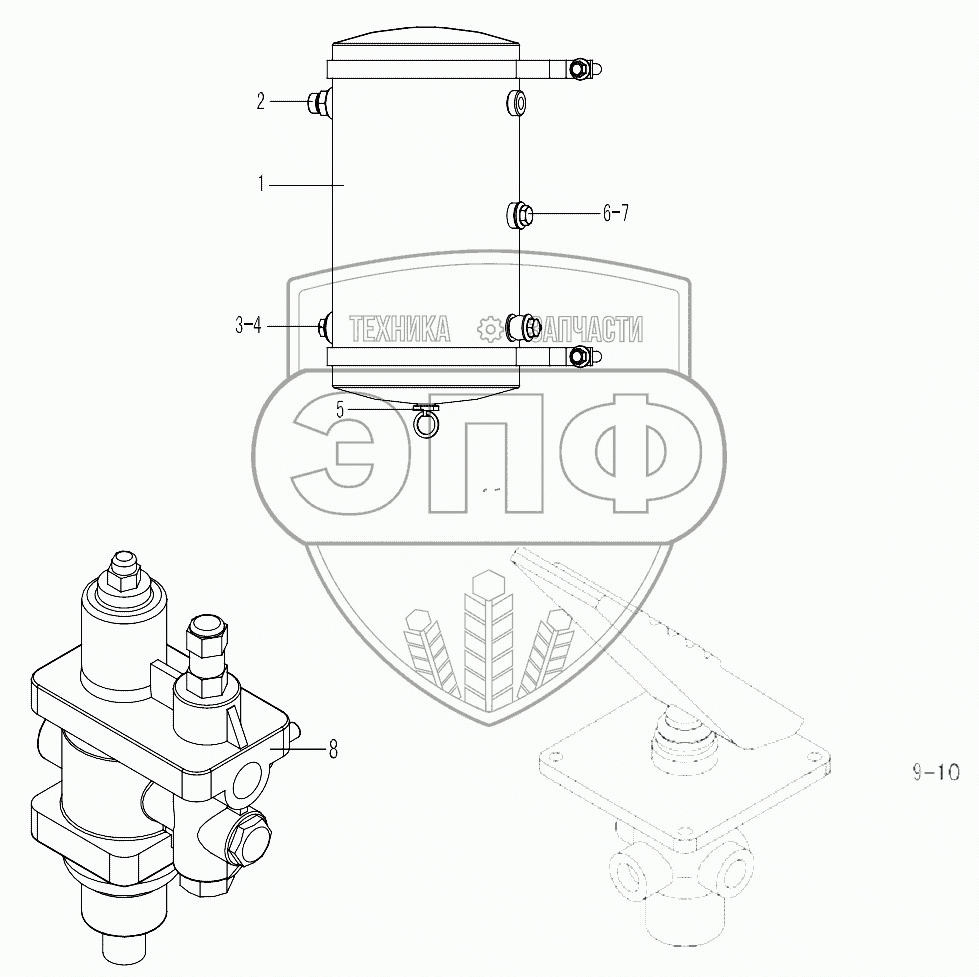 Каталог запасных частей к технике: SDLG LG968. AIR RESERVOIR, BRAKE CONTROL VALVE, AIR DRYER