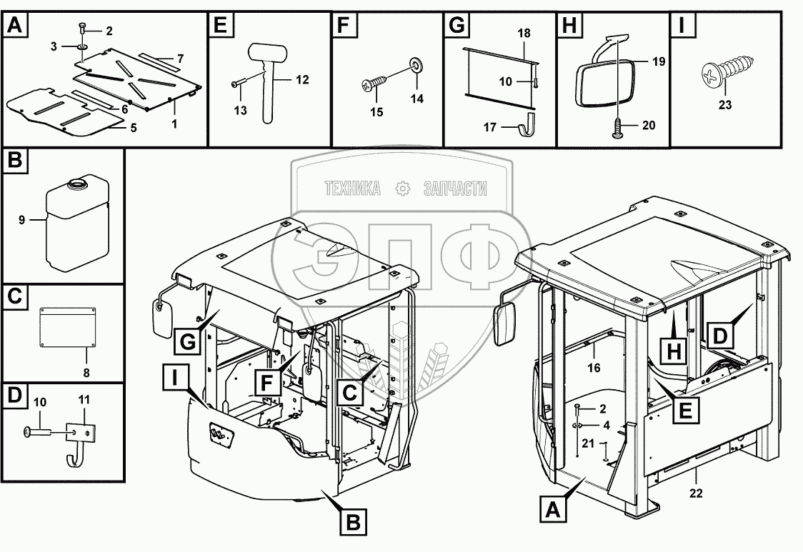 Каталог запасных частей к технике: SDLG LG969N. Cab inner parts assembly