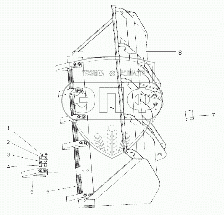 Каталог запасных частей к технике: SEM616B. Bucket assembly