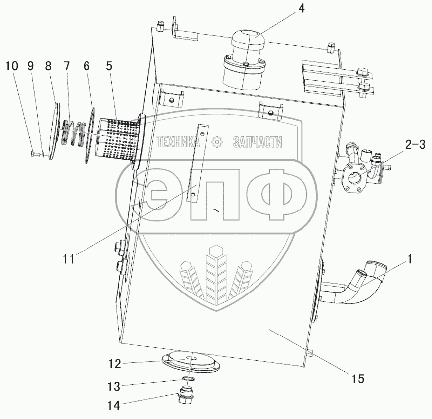 Каталог запасных частей к технике: SEM636D. Hydraulic tank assembly