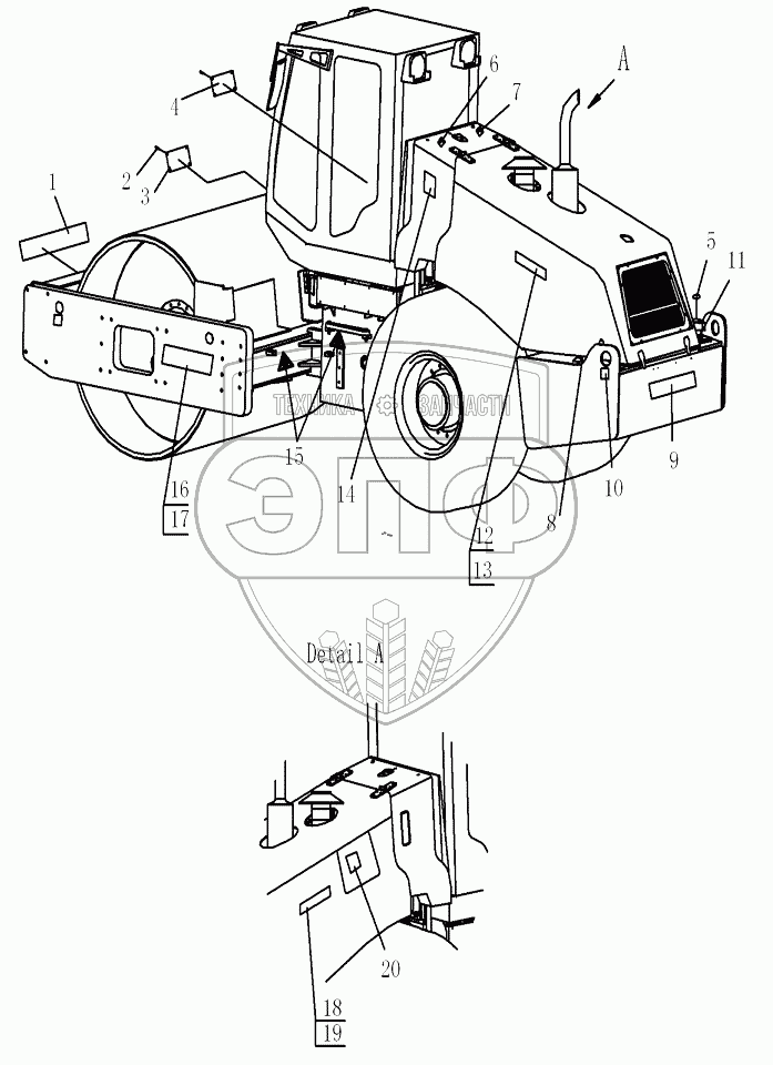 Каталог запасных частей к технике: Shantui Каток SR16. LABEL PLATE LAYOUT AND COATING