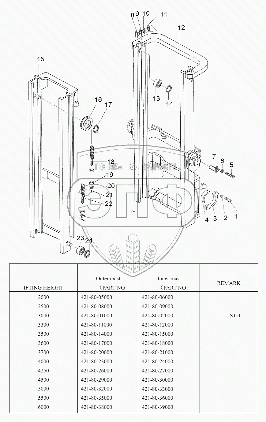 Каталог запасных частей к технике: Shantui Погрузчик SF15, SF18. MAST