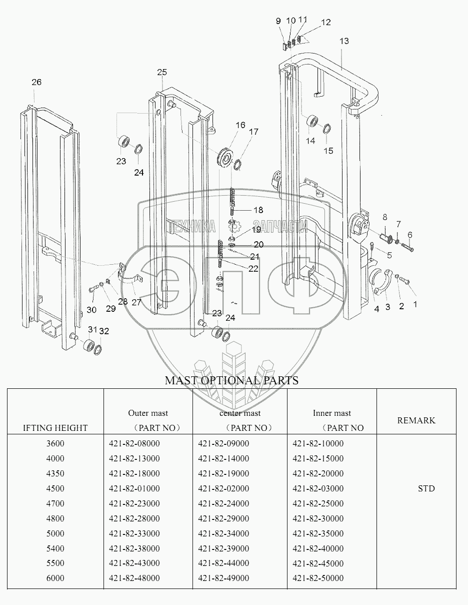 Каталог запасных частей к технике: Shantui Погрузчик SF15, SF18. MAST
