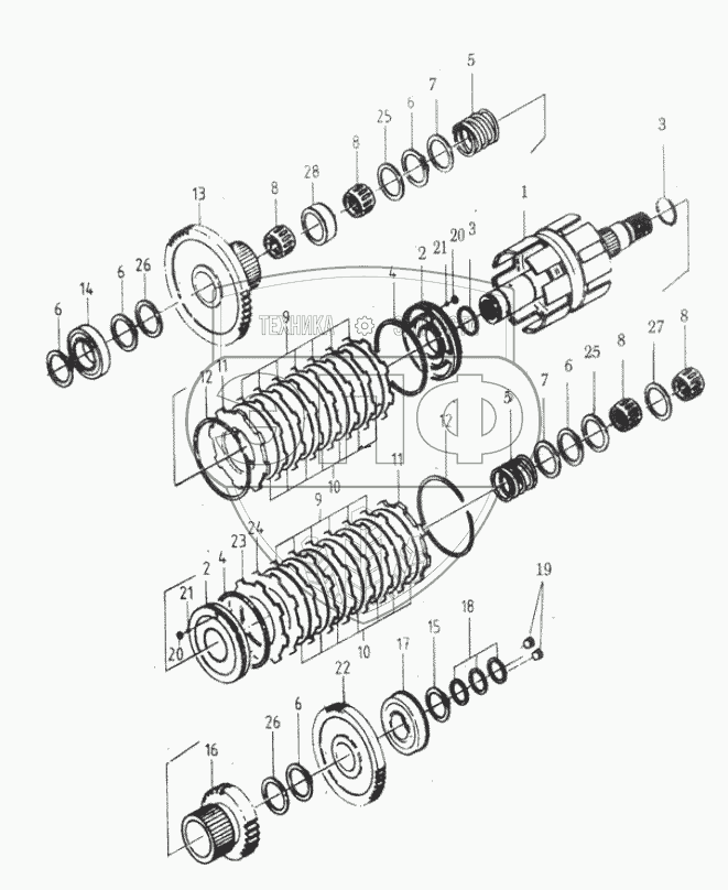 Каталог запасных частей к технике: Shantui Погрузчик SF50/SF60/SF70. CLUTCH (FRONT, BACK)