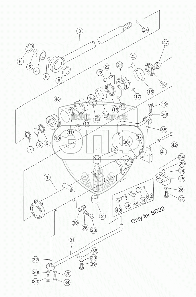 Каталог запасных частей к технике: Shantui SD22 (вариант). BLADE LIFT CYLINDER (1/2)