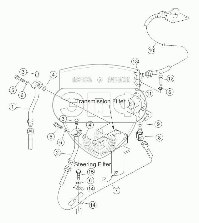 Каталог запасных частей к технике: Shantui SD22 (вариант). STEERING PIPING (2/3)