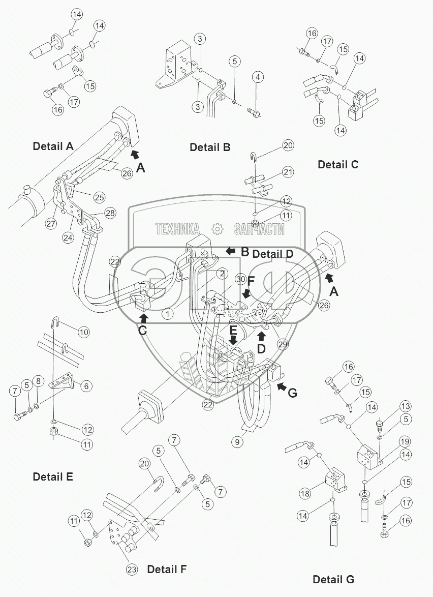 Каталог запасных частей к технике: Shantui SD32 (вариант). BLADE LIFT PIPING (2/2)