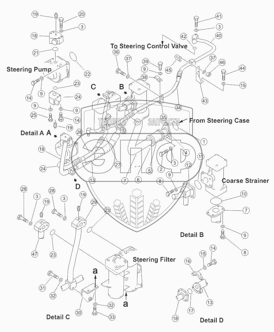 Каталог запасных частей к технике: Shantui SD32 (вариант). STEERING PIPING SYSTEM (1/2)