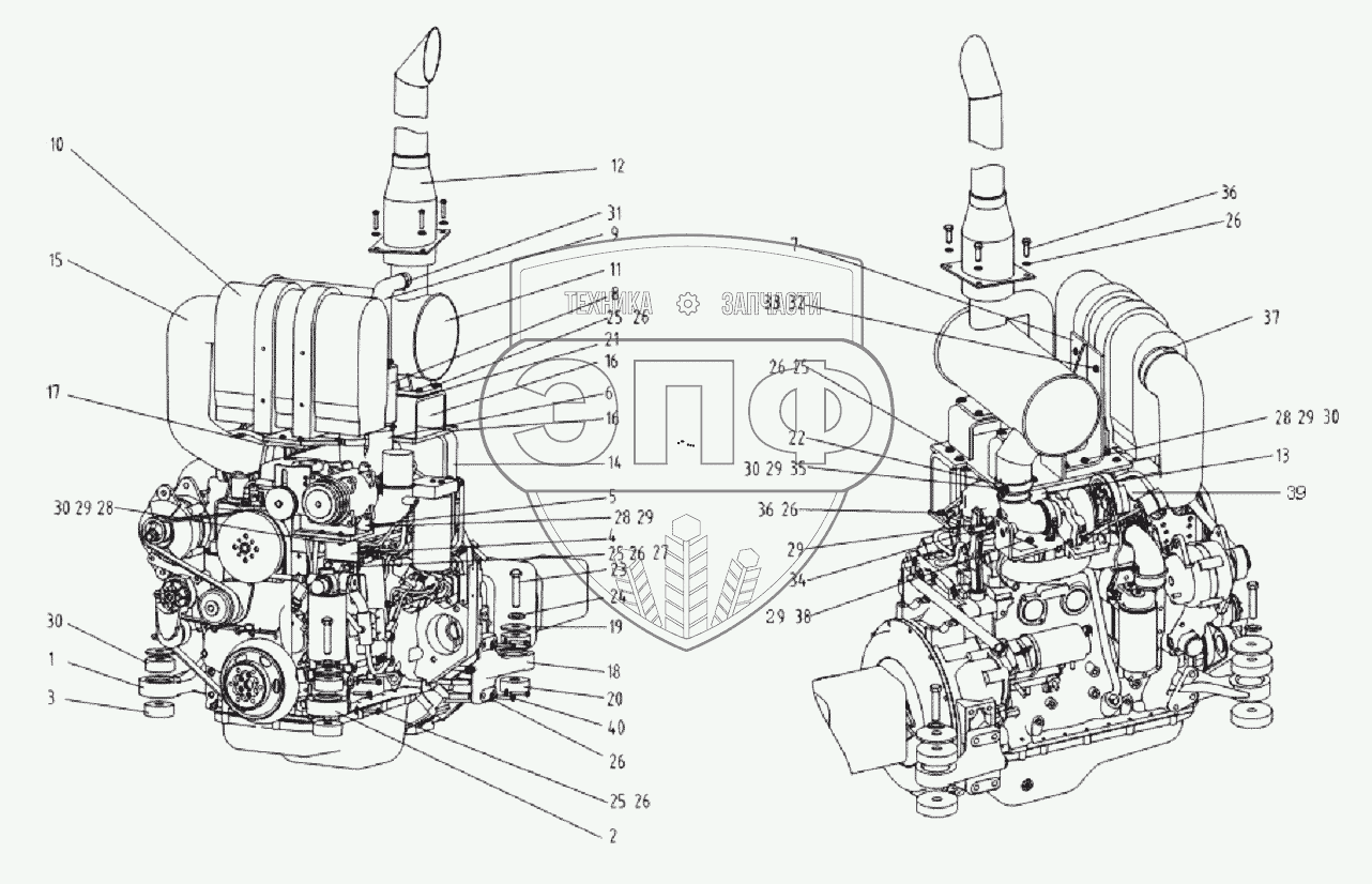 Каталог запасных частей к технике: Shantui SD10YE. ENGINE MOUNTING AND ATTACHMENT