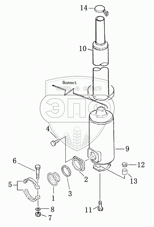 Каталог запасных частей к технике: Shantui SD23 (вариант). EXHAUST MANIFOLD AND MUFFLER