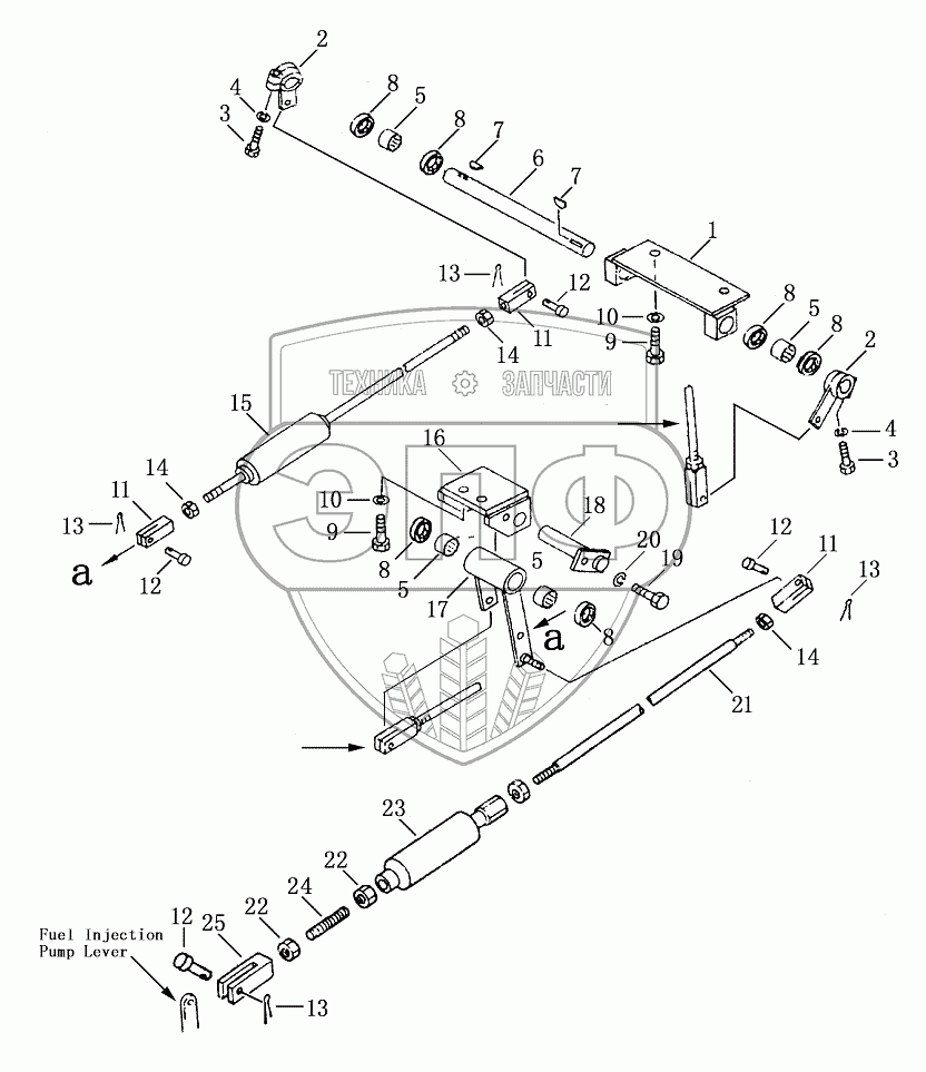 Каталог запасных частей к технике: Shantui SD23 (вариант). FUEL CONTROL LINKAGE