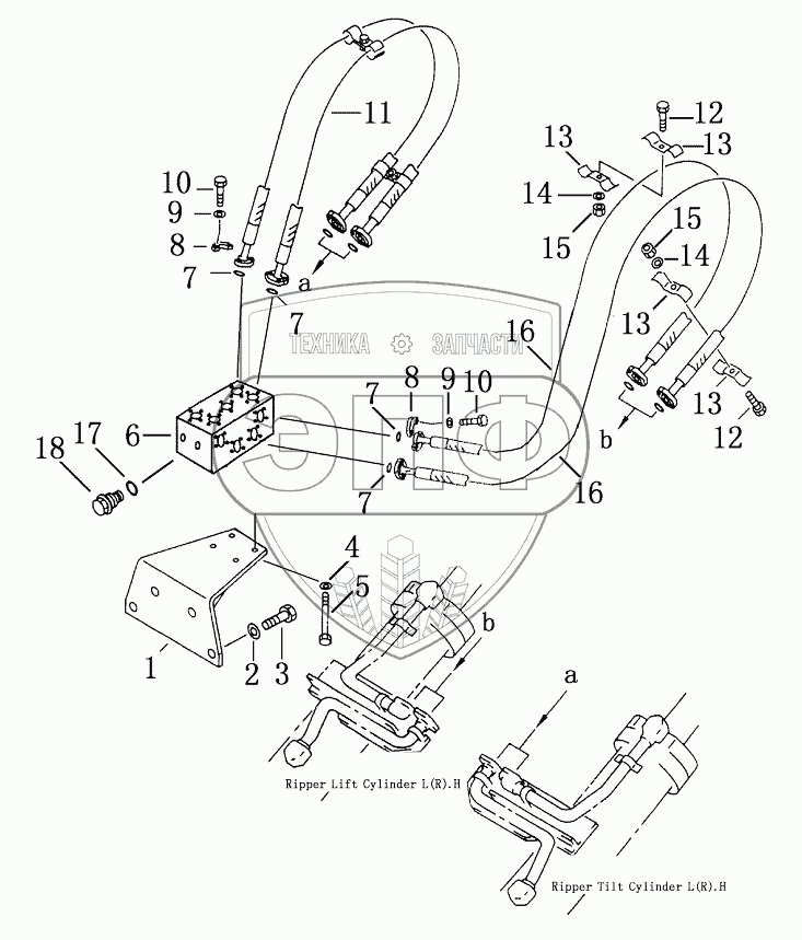 Каталог запасных частей к технике: Shantui SD23 (вариант). SINGLE SHANK RIPPER PIPING
