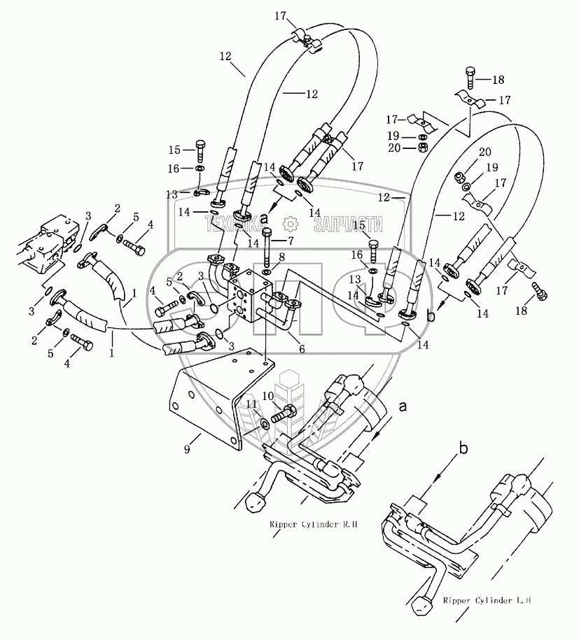 Каталог запасных частей к технике: Shantui SD23 (вариант). THREE SHANK RIPPER PIPING