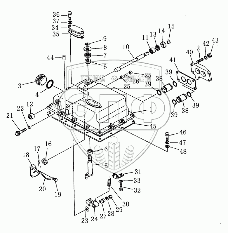Каталог запасных частей к технике: Shantui SD23 (вариант). TRANSMISSION VALVE COVER AND LEVER