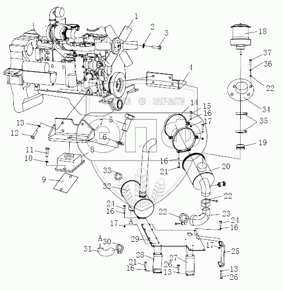Каталог запасных частей к технике: Shantui SG18-3. ENGINE MOUNTING AND ATTACHMENT