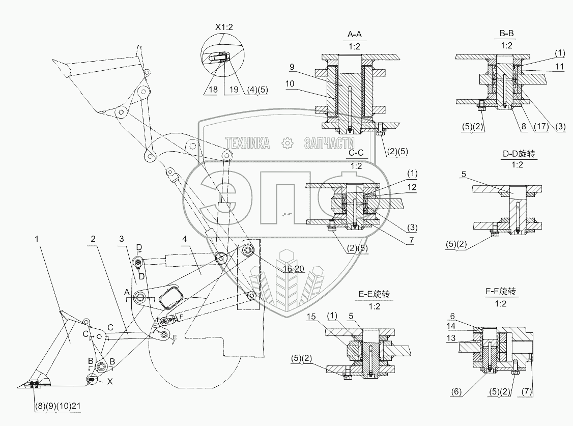 Каталог запасных частей к технике: Shantui SL-30W. Work implement assembly