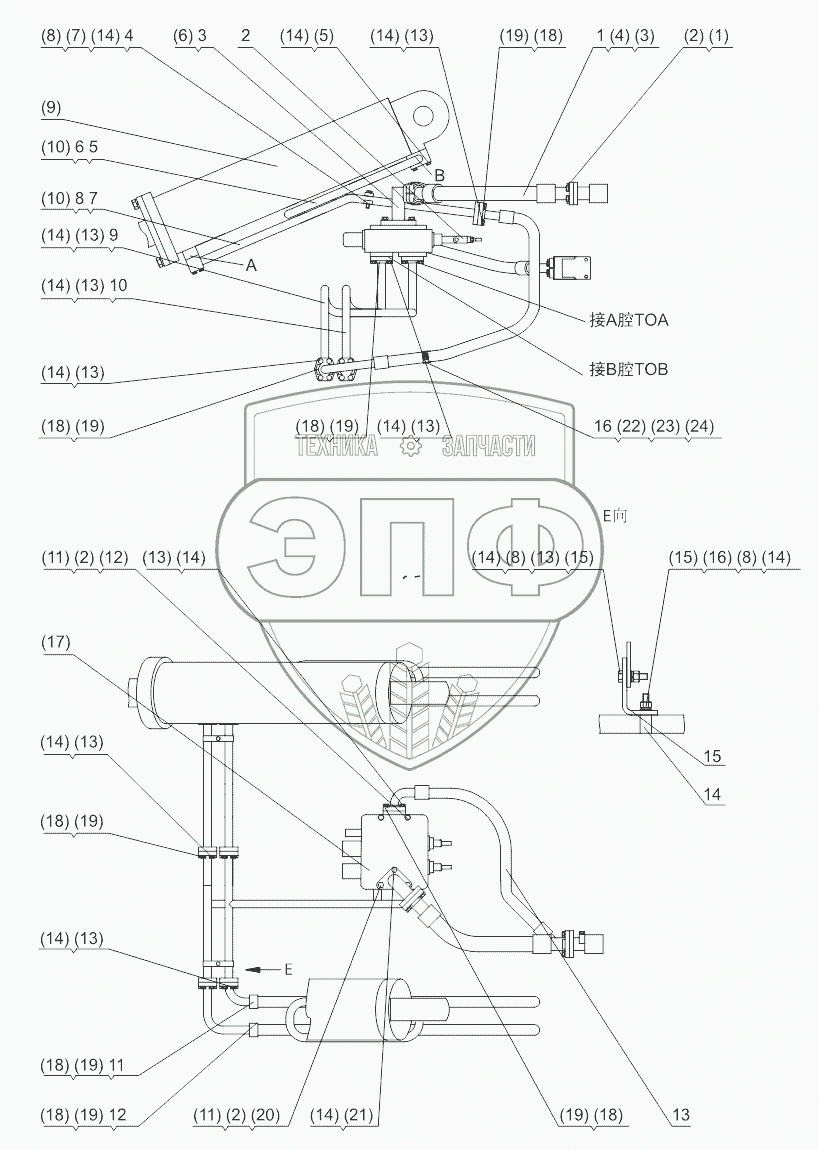 Каталог запасных частей к технике: Shantui SL-50W. LIFTING CYLINDER PIPING