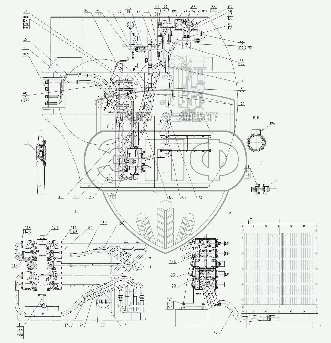 Каталог запасных частей к технике: ТВЭКС 5846ТМ (ЕА17). Трубопроводы на поворотной платформе