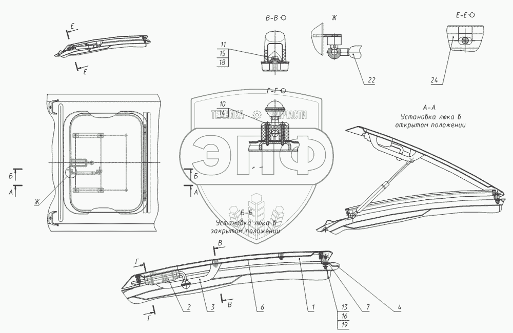Каталог запасных частей к технике: ТВЭКС 5846ТМ (ЕА17). Установка люка