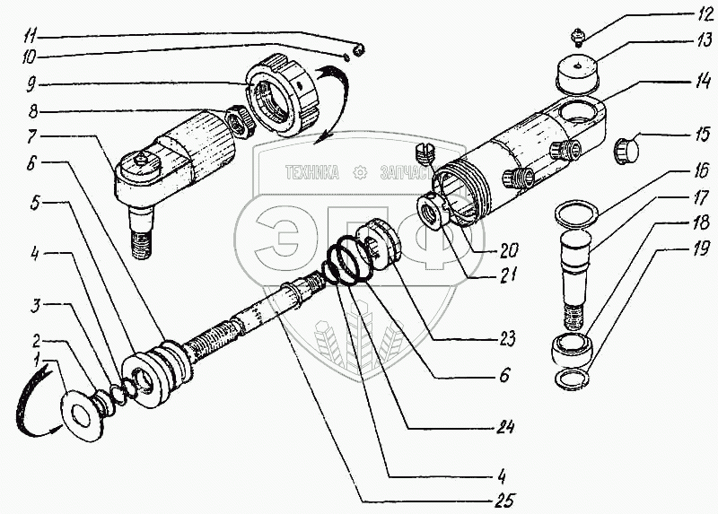 Каталог запасных частей к технике: ТВЭКС ЕК-12. Цилиндр поворота колес левый